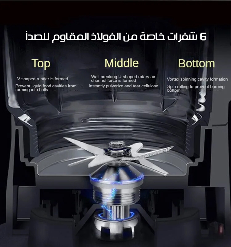 ✅ شفرات من الفولاذ المقاوم للصدأ لفرم سريع وكمان مش بيتفاعل مع الأكل يعني مش هيغير طعم وريحة الأكل🫡