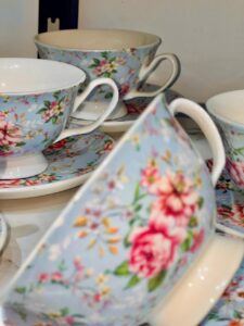 طقم قهوة مشجّر بورد شكله ناعم ورقيق، يدي إحساس بالصفا والرُقي في كل لحظة قهوة.