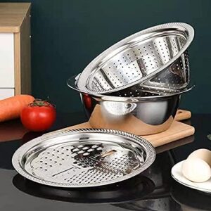 🥗✨ طقم مطبخ 3×1 عملي من الستانلس – مصفاة ومبشرة ووعاء تقديم في منتج واحد!
