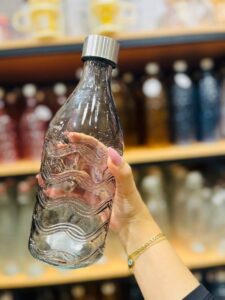 🥂 مصنوعة من زجاج قوي وواضح، تمسكيها براحة وأمان وكأنها قطعة ديكور أنيقة أكتر من مجرد زجاجة!