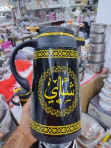 ☕ ترمس عربي أنيق لحفظ حرارة الشاي والقهوة – سعة 1.9 لتر 🤍🖤 ☕