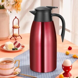ترمس حراري فخم من الستانلس ستيل لحفظ المشروبات الساخنة والباردة – سعة 2 لتر باللون الأحمر ❤️🔥