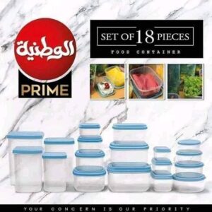 طقم كامل فيه 18 علبة بأحجام وألوان مختلفة، يناسب كل احتياجاتك اليومية من التلاجة للمكتب أو المدرسة 👌
