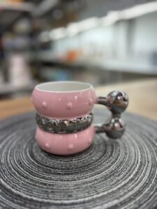 👑 دلعي قهوتك! مج البورسلين “المُلَّكي” – فخامة وردية بلمسة فضية! 💖✨ المج ده مش مج عادي، دي قطعة فنية على ترابيزتك! شكله الـ “في. آي. بي.” (V.I.P) ده هيخلي كل رشفة قهوة ☕ أو شاي 🍵 ليها طعم تاني خالص! 🤩💎