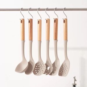 🍳 طقم أدوات مطبخ سيليكون بمقبض خشب وستاند معدني شيك جدًا!