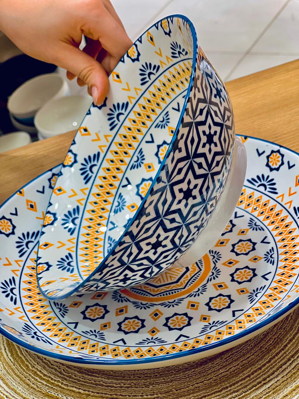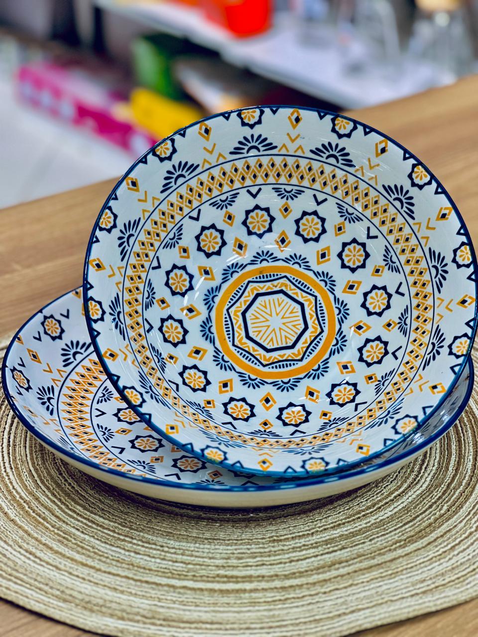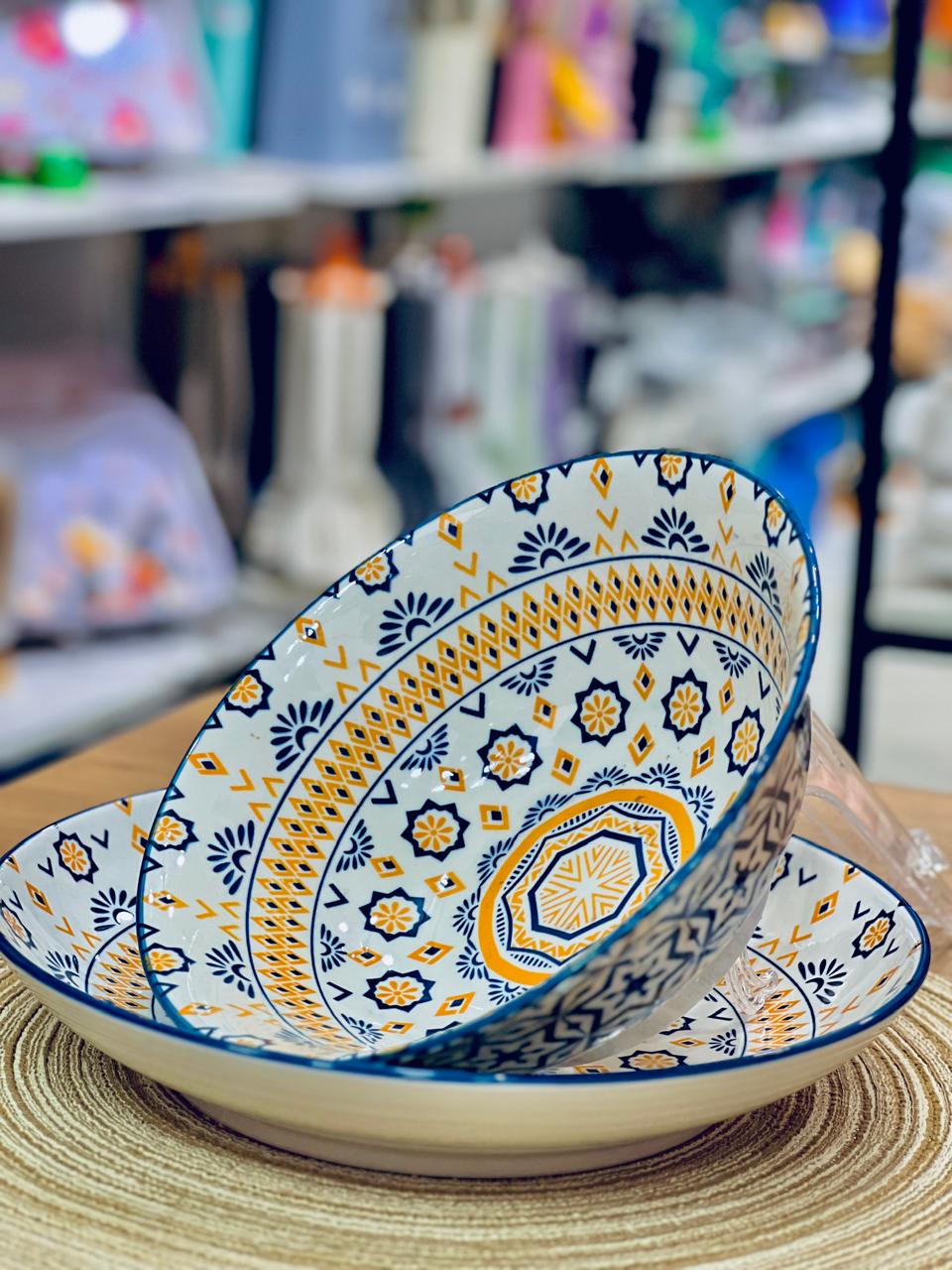 🍲 بولة حراري بورسلين 🍽️ طبق واسع بنقشات تحفة وجذابة القطعتين يتحملوا حرارة الفرن،
