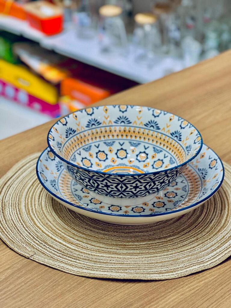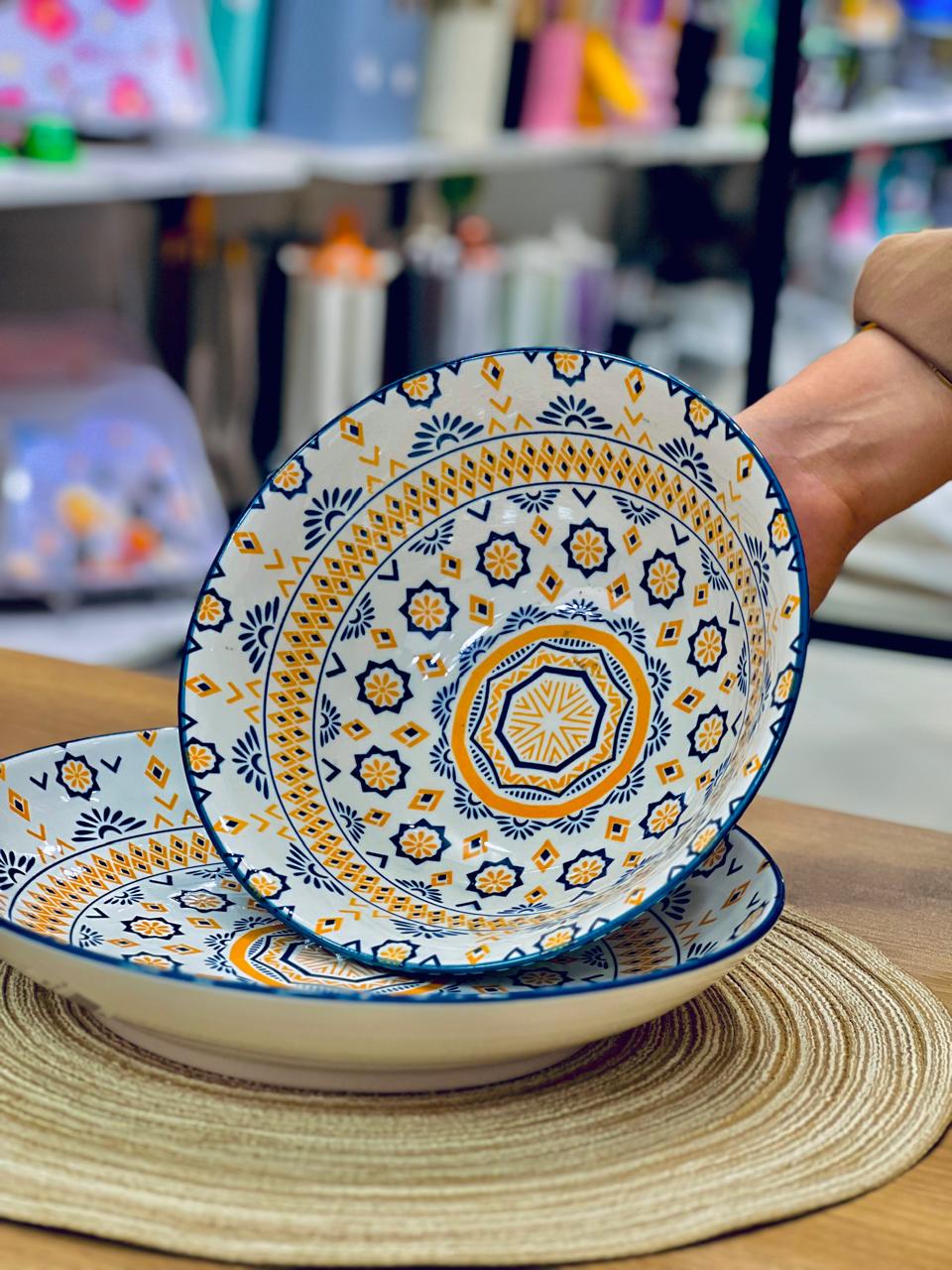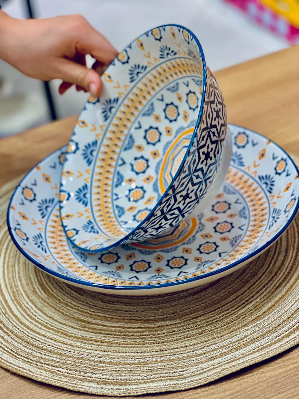 🍲 بولة حراري بورسلين 🍽️ طبق واسع بنقشات تحفة وجذابة القطعتين يتحملوا حرارة الفرن،