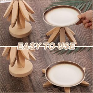 خلي سفرتك دايمًا أنيقة وآمنة مع طقم القواعد الخشبية بشكل شجرة – الجمال في التفاصيل 🌳💛